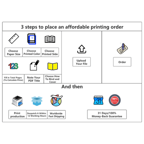 - We will print the first page of your pdf as the cover if you choose color printing or b&w printing.